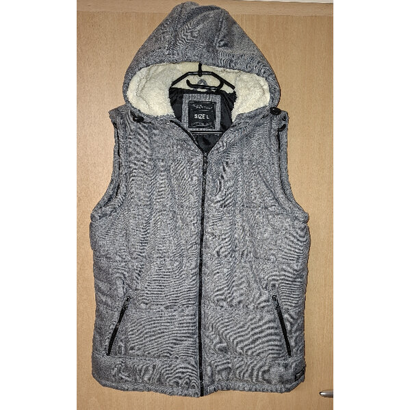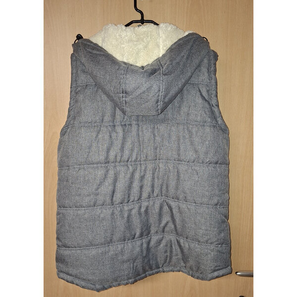 Schöne dick wattierte Steppweste von Jean Pascale, Größe L, 2 großzügige seitliche RV Taschen, 1 Innentasche mit Klett, Kapuze mit künstlichem Lammfell gefüttert und per Gummizug verstellbar. Im Rücken etwas länger geschnitten. Laut Etikett eigentlich eine Herren Weste. Maße: Achsel zu Achsel ca. 55 cm. Gesamtlänge von Mitte Nacken bis untere Kante 74 cm.