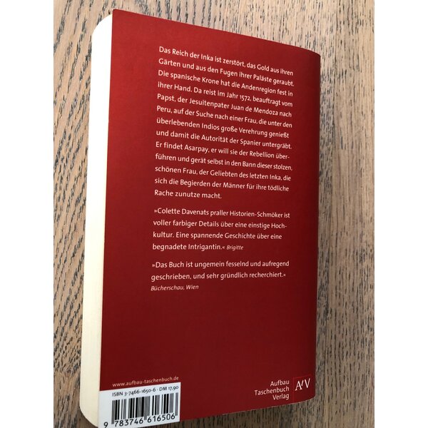 Das Reich der Inka ist zerstört, das Gold aus ihren Gärten und aus den Fugen ihrer Paläste geraubt. Die spanische Krone hat die Andenregion fest in ihrer Hand. Da reist im Jahr 1572, beauftragt vom Papst, der Jesuitenpater Juan de Mendoza nach Peru, auf der Suche nach einer Frau, die unter den überlebenden Indios große Verehrung genießt und damit die Autorität der Spanier untergräbt. Er findet Asarpay, er will sie der Rebellion überführen und gerät selbst in den Bann dieser stolzen, schönen Frau, der Geliebten des letzten Inka, die sich die Begierden der Männer für ihre tödliche Rache zunutze macht.