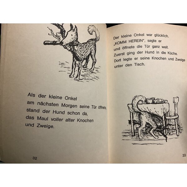 Jede Seite hat auch eine Illustration, schwarz. Goss Buchstaben.