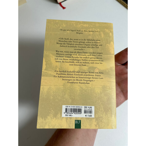 Was tun, wenn man als ältere Dame von drei jungen Männern verfolgt wird, die einem nach dem Leben trachten? Linnea Ravaska hat endlich genug davon, sich von ihrem zwielichtigen Neffen tyrannisieren zu lassen. Sie beschließt, sich zu wehren, und zwar bis zum bitteren Ende ...