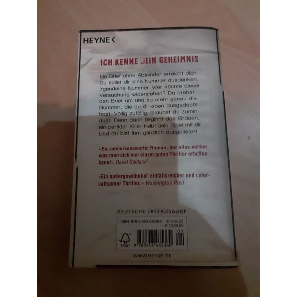 Ein Brief ohne Absender erreicht dich. Du sollst dir eine Nummer ausdenken. Irgendeine Nummer. Wer könnte dieser Versuchung widerstehen? Du drehst den Brief um, und da steht dieselbe Nummer, die du dir eben ausgedacht hast. Völlig zufällig. Glaubst du zumindest. Denn dann beginnt das Grauen, ein perfider Killer treibt sein Spiel mit dir. Und du bist ihm gänzlich ausgeliefert.