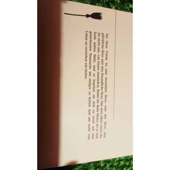Die Hexe Frieda ist eine besondere Hexe, eine alte Hexe, eine glückliche Hexe und eine freundliche Hexe. Das aber allein reicht für sie nicht aus, auf Dauer zumindest, findet ihr Rabe Melox als er sein Ende nahen fühlt; und so begeben sie sich zu zweit auf eine gemeinsame Sinnsuche, um einiges zu lernen und um mehr vom Leben zu verstehen wie bisher.
