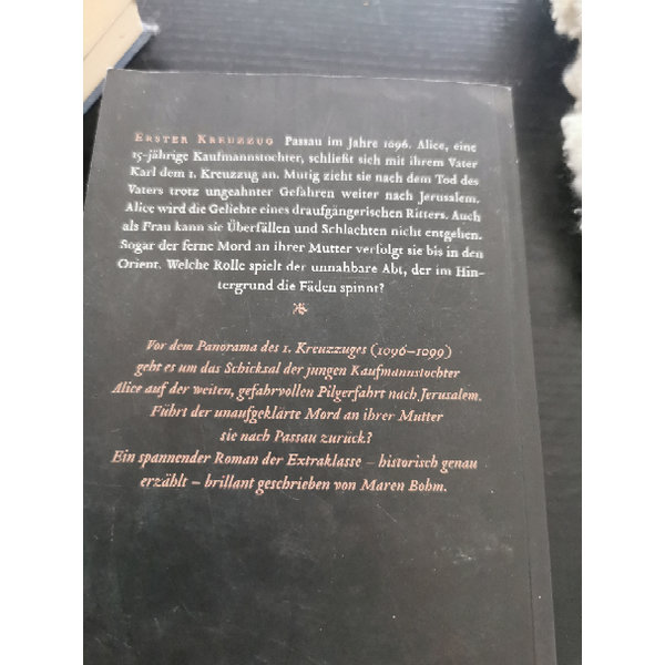 Passau im Jahre 1096. Alice, eine 15-jährige Kaufmannstochter, schließt sich mit ihrem Vater Karl dem 1. Kreuzzug an. Mutig zieht sie nach dem Tod des Vaters trotz ungeahnter Gefahren weiter nach Jerusalem. Alice wird die Geliebte eines draufgängerischen Ritters. Auch als Frau kann sie Überfällen und Schlachten nicht entgehen. Sogar der ferne Mord an ihrer Mutter verfolgt sie bis in den Orient.