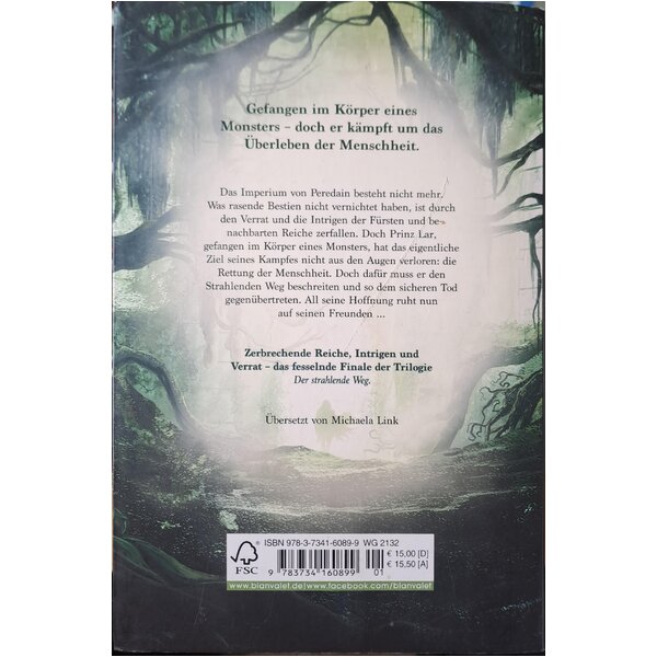 Das Imperium von Peredain besteht nicht mehr. Was rasende Bestien nicht vernichtet haben, ist durch den Verrat und die Intrigen der Fürsten und benachbarten Reiche zerfallen. Doch Prinz Lar, gefangen im Körper eines Monsters, hat das eigentliche Ziel seines Kampfes nicht aus den Augen verloren: die Rettung der Menschheit. Doch dafür muss er den Strahlenden Weg beschreiten und so dem sicheren Tod gegenübertreten. All seine Hoffnung ruht nun auf seinen Freunden …
