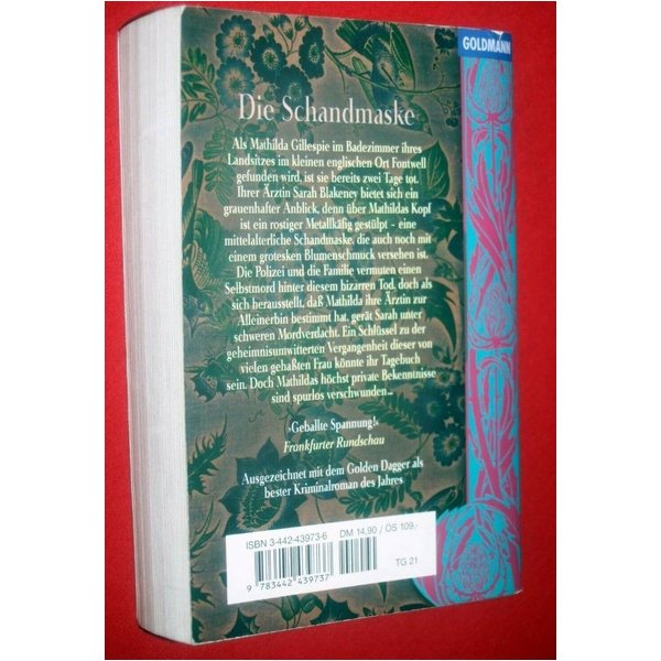 Der Spiegel-Bestseller jetzt erstmals im Taschenbuch: Die junge Ärztin Sarah Blakeney ist schockiert. als sie die Leiche von Mathilda Gillespie sieht, denn die Tote trägt eine makaber geschmückte mittelalterliche Schandmaske. Während Polizei und Familie von Selbstmord ausgehen, ist Sarah nicht bereit. diese Erklärung hinzunehmen. Doch dann stellt sich heraus, daß Mathilda sie zur Alleinerbin gemacht hat.