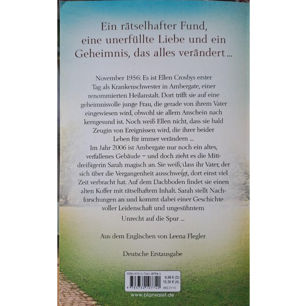 1956: Es ist Ellen Crosbys erster Tag als Krankenschwester in Ambergate, einem Sanatorium in Manchester. Dort trifft sie auf eine geheimnisvolle junge Frau, die gerade von ihrem Vater eingewiesen wird, obwohl sie allem Anschein nach kerngesund ist. Noch weiß Ellen nicht, dass sie bald eine Entscheidung treffen wird, die ihrer beider Leben für immer verändert …2006: Ambergate, mittlerweile nur noch ein altes, verfallenes Gebäude, zieht die Mittdreißigerin Sarah magisch an. Ihr Vater, ein in die Jahre gekommener Arzt, hat dort einst viel Lebenszeit verbracht. Auf dem Dachboden findet sie einen alten Koffer mit einer rätselhaften Botschaft darin. Sarahs Nachforschungen enthüllen eine Geschichte voller Leidenschaft und ungesühntem Unrecht ...