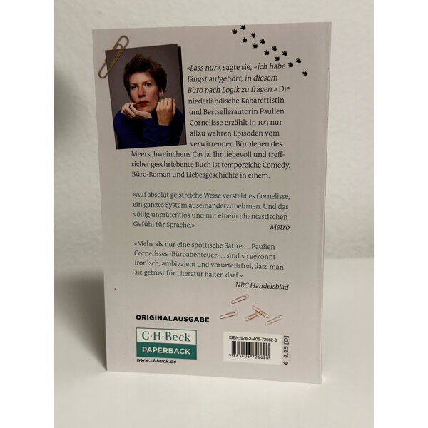 «Lass nur», sagte sie, «ich habe längst aufgehört, in diesem Büro nach Logik zu fragen.» Paulien Cornelisse erzählt in 103 nur allzu wahren Episoden vom verwirrenden Büroleben des Meerschweinchens Cavia. Ihr liebevoll und treffsicher geschriebenes Buch ist temporeiche Comedy, Büro-Roman und Liebesgeschichte in einem und wurde in den Niederlanden sofort zum Bestseller. Was macht ein Meerschweinchen im Großraumbüro? Natürlich arbeiten (Online-Werbung), Cappuccino doppio trinken, obskure Krankheiten googeln (asymptomatische Blasenentzündung), Betriebsyoga, Gruppenumarmungen (manchmal nur mit Roy), Abteilungsfeiern Erfolge stellen sich aus Versehen ein. Das Leben könnte schön sein, wären da nicht der hocheffiziente, joviale Controller Rudi (Stromberg lässt grüßen), die autoritäre Personalerin Stella (Instinkt eines Raubtiers), Exfreund Roger, der sie auf seiner Hochzeit sehen will, peinliche Präsentationen («Gerade in diesen Zeiten ist ...