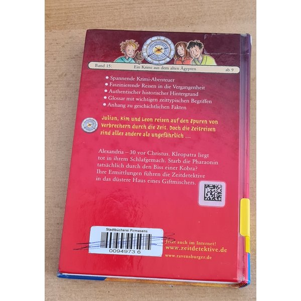 Alexandria - 30 vor Christus. Kleopatra liegt tot in ihrem Schlafgemach. Starb sie tatsächlich durch den Biss einer Kobra? Ihre Ermittlungen führen die Zeitdetektive in das düstere Haus eines Giftmischers.