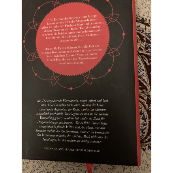 Aus dem Englischen von Bernhard Robben. 1572: In den Palast Akbars im indischen Fatehpur Sikri kommt ein junger Mann, der behauptet, er sei aus Florenz im fernen Europa angereist, heiße Vespucci und sei Akbars Onkel. Der ob der überraschenden Verwandtschaftsbeziehung verblüffte, aber von der Neugier gepackte Moguln-Herrscher gewährt ihm Gastfreundschaft - und lässt sich in dämmrigen Abendstunden fasziniert erzählen. So erfährt er von Machiavelli, Botticelli, dem Admiral Andrea Doria, Dracula und tausend anderen. Die Schauplätze von Vespuccis weitschweifigem Bericht reichen vom indischen Subkontinent über das Italien der Renaissance und den Nahen Osten bis nach Amerika.