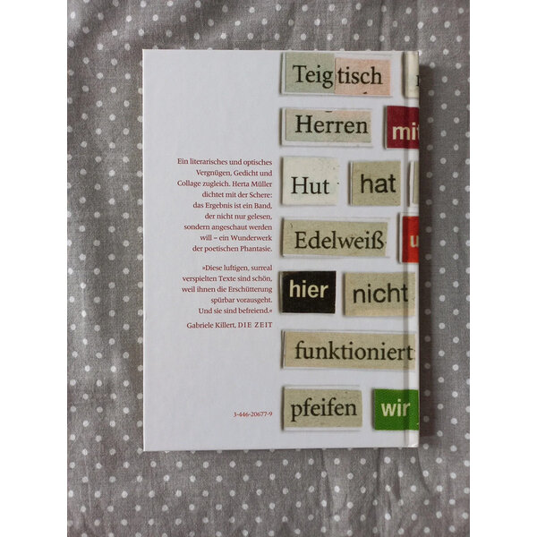 Ein literarisches und ein optisches Vergnügen, Gedicht und Collage zugleich: Aus Zeitungsausschnitten und Bildern setzt Herta Müller ihre Texte zusammen, so dass jedes einzelne Gedicht zu einer ebenso verspielten wie künstlerisch konsequenten Collage wird. Ein wunderbares, unvergleichliches Buch, das zeigt, zu welchen spielerischen Formen die poetische Phantasie finden kann.