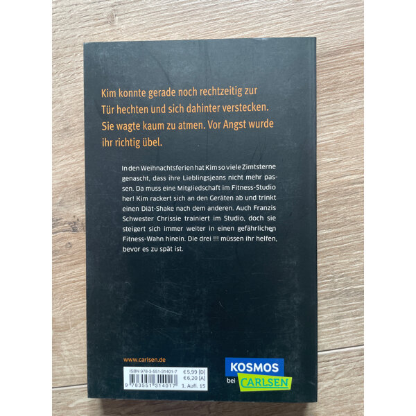 In den Weihnachtsferien hat Kim so viele Zimtsterne genascht, dass ihre Lieblingsjeans nicht mehr passen. Da muss eine Mitgliedschaft im Fitness-Studio her! Kim rackert sich an den Geräten ab und trinkt einen Diät-Shake nach dem anderen. Auch Franzis Schwester Chrissie trainiert im Studio, doch sie steigert sich immer weiter in einen gefährlichen Fitness-Wahn hinein. Die drei !!! müssen ihr helfen, bevor es zu spät ist.