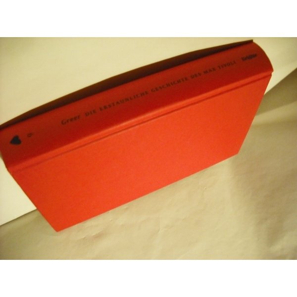 roter Pappeinband mit Schutzumschlag, dunkelrote Vor- und Nachsatzblätter
