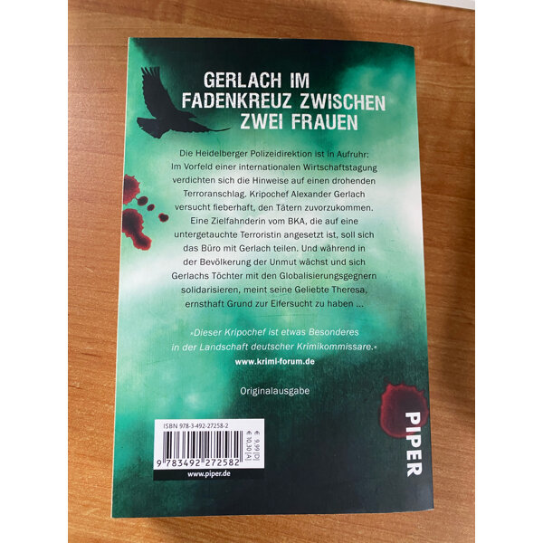 Die Heidelberger Polizeidirektion gleicht einem aufgescheuchten Hühnerhaufen: Im Vorfeld einer internationalen Wirtschaftstagung verdichten sich die Hinweise auf einen bevorstehenden Terroranschlag, und Kripochef Alexander Gerlach versucht fieberhaft, den Tätern zuvorzukommen. Als eine Zielfahnderin vom BKA eintrifft, die auf eine untergetauchte Terroristin angesetzt ist, soll sich die neue Kollegin das Büro ausgerechnet mit Gerlach teilen. Nach anfänglichen Schwierigkeiten kommt man sich näher, und während in der Bevölkerung der Unmut wächst und sich Gerlachs halbwüchsige Töchter mit den radikalen Globalisierungsgegnern solidarisieren, meint seine Geliebte Theresa plötzlich, ernsthaft Grund zur Eifersucht zu haben ...