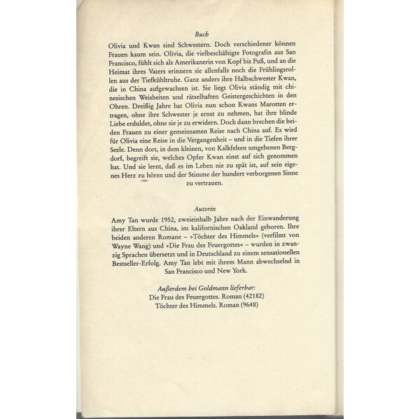 Ein Roman über Hoffnung, Liebe und den Zauber des Fremden. Sie sind wie Tag und Nacht: Olivia, die Fotografin aus San Francisco, und ihre Halbschwester Kwan, mit ihren rätselhaften Geschichten aus ihrer chinesischen Heimat.