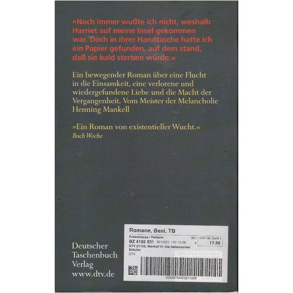 Fredrik Welin ist etwas widerfahren, das er nur »die Katastrophe« nennt. Danach hat sich der ehemalige Chirurg auf eine kleine Insel in den Schären zurückgezogen und meidet jeden Kontakt mit den Menschen. Doch dann steht eines Tages seine Jugendliebe Harriet vor der Tür und erinnert ihn an ein altes Versprechen. Er folgt ihr auf eine Reise in die Vergangenheit, voller unverhoffter Begegnungen mit außergewöhnlichen Menschen. Eine Reise, die ihm den Weg zurück zu den Menschen weisen wird