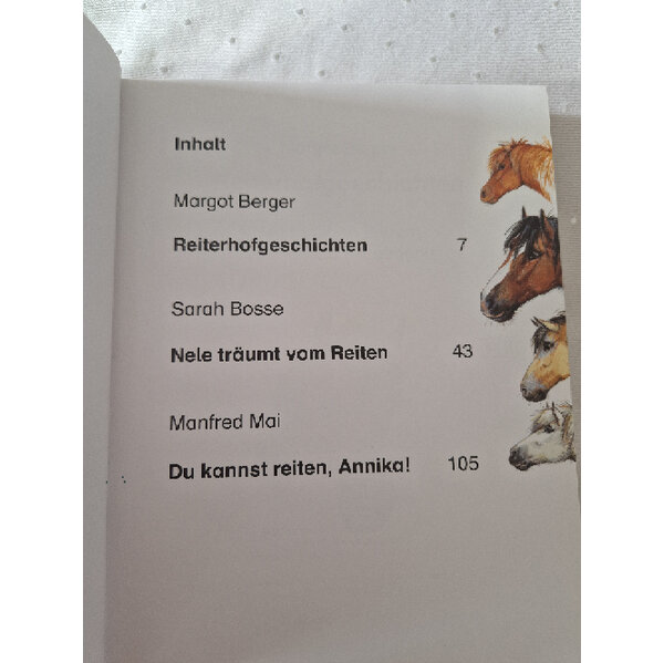 Pferde, Freundschaft, reiten lernen- drei Geschichten für pferdebegeisterte Mädchen! Auf dem Reiterhof ist immer was los und schon bald ist es Zeit für ein neues Abenteuer. Der Sammelband enthält die Geschichten: "Nele träumt vom Reiten", "Reiterhofgeschichten" und "Du kannst reiten, Annika!"