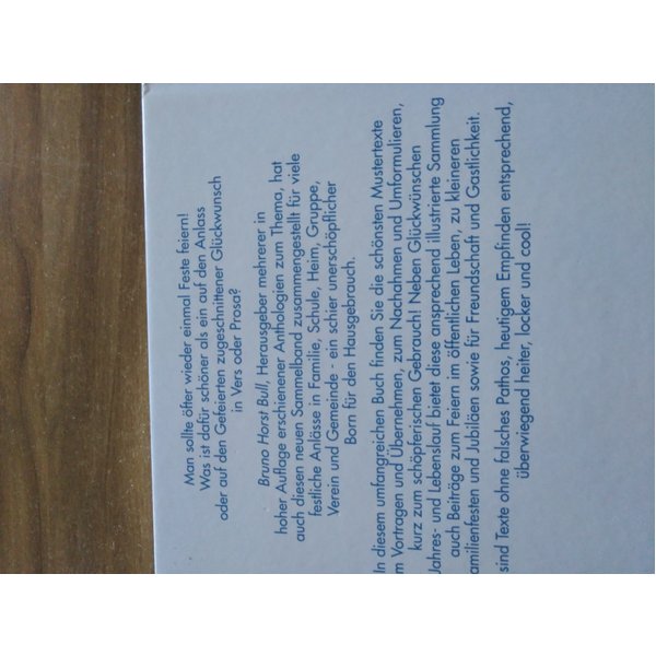 In diesem umfangreichen Buch finden Sie die schönsten Mustertexte zum Vortragen und Übernehmen, zum Nachahmen und Umformulieren. Neben Glückwünschen im Jahres- und Lebenslauf bietet diese ansprechend illustrierte Sammlung auch Beiträge zum Feiern im öffentlichen Leben, zu kleineren Familienfesten und Jubiläen sowie für Freundschaft und Gastlichkeit.