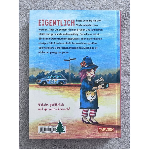 Eigentlich hatte Lennard nie vor, Verbrecherboss zu werden. Aber um seinem kleinen Bruder Linus zu helfen, bleibt ihm gar nichts anderes übrig. Denn Linus hat ein Ein-Mann-Detektivteam gegründet, aber bisher keinen einzigen Fall. Also beschließt Lennard einzugreifen; Spektakuläre Verbrechen müssen her. Doch das ist einfacher gesagt als getan.