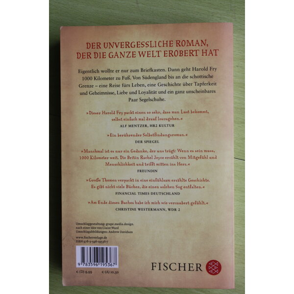 Eigentlich wollte er nur zum Briefkasten. Dann geht Harold Fry 1000 Kilometer zu Fuß. Von Südengland bis an die schottische Grenze. Eine Reise fürs Leben, eine Geschichte über Tapferkeit und Geheimnisse, Liebe und Loyalität und ein ganz unscheinbares Paar Segelschuhe.