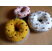 Drei selbstgestickte Donats mit Holzperlen. Mit Füllwatte gefüllt. Zum Dekorieren oder zum Spielen.
