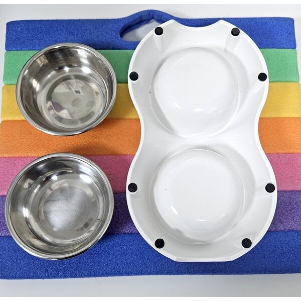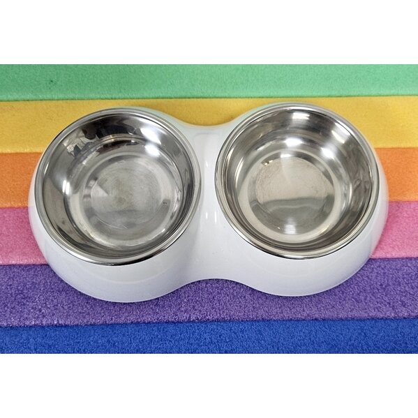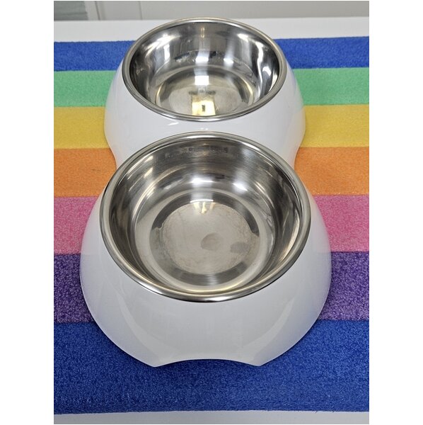 Aus hochwertigem, lebensmitteltauglichem Melamin, mit zwei herausnehmbaren Fressnäpfen aus Edelstahl (rostfrei). Am Napfboden befinden sich Gummiaufsätze, die eine hohe Rutschfestigkeit garantieren. Robust, stoß- und kratzfest, pflegeleicht und hygienisch. Der Napf bietet sich sowohl für Trockenfutter als auch Nassfutter an und ist außerdem spülmaschinenfest.