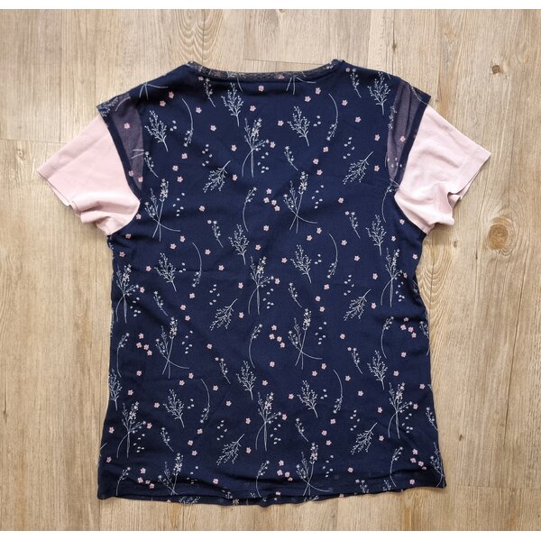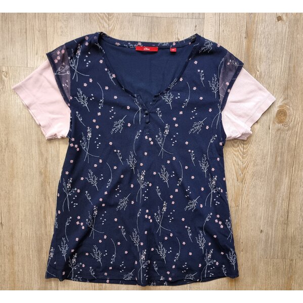Biete ein doppellagiges Shirt mit einem floralen Muster.