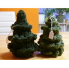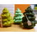 Drei gehäkelte Tannenbäume in verschiedenen Grüntönen. Mit Füllwatte gefüllt.