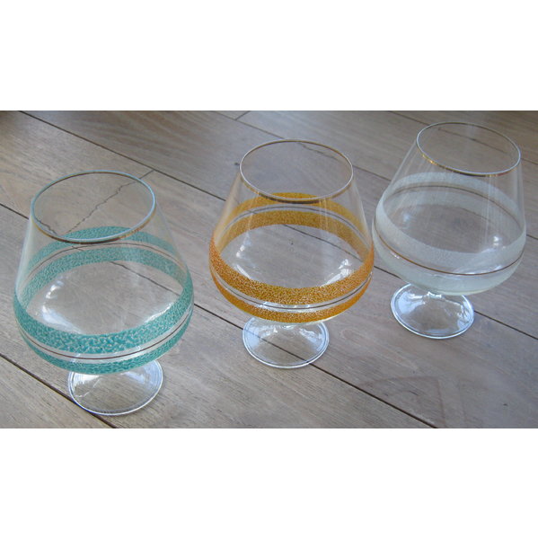 Glaskrösel unterschiedlich gefärbt, Goldrand gut erhalten.