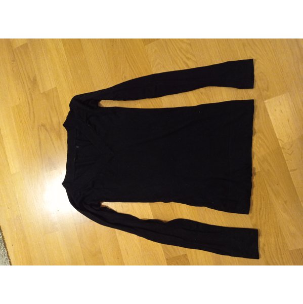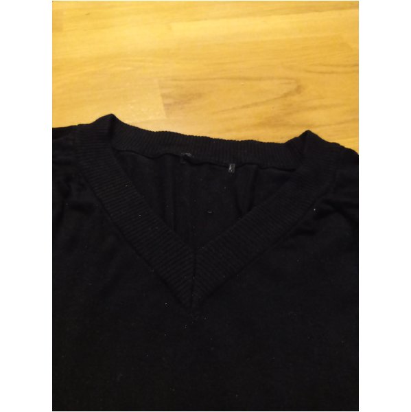 Ich mochte den Pullover gerne, aber leider ist er mir nun zu eng. Der Ausschnitt ist spitz. Das Material ist eine Kunstfaser. Von der Schulter bis zum Saum misst der Pullover ca. 62cm.