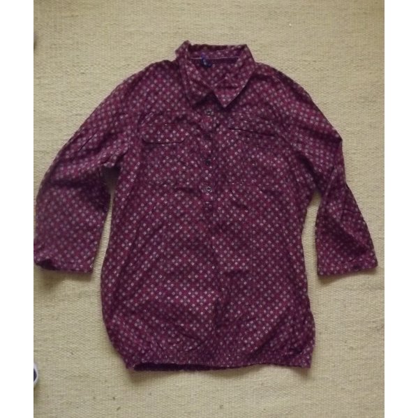 dunkelrote Bluse, unten Gummizug, als Gr M ausgelabelt, getragen bei Gr 38