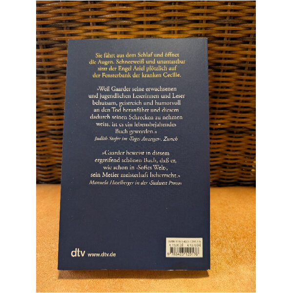 Weihnachtsabend - die kranke Cecilie würde gerne so feiern wie all die Jahre vorher, aber es will ihr nicht so recht gelingen. Als sie erschöpft ins Bett sinkt, spricht plötzlich jemand zu ihr: Ariel behauptet, ein Engel zu sein, und zieht sie in ein tiefgründiges Gespräch. So sieht sich Cecilie zum ersten Mal in ihrem Leben herausgefordert, ihre Existenz in der Welt zu durchdenken und mit ihrer Vorstellungskraft hinter das vorzudringen, was der Spiegel uns als vertraute Fassade zeigt. Gaarders Roman ist eine ungewöhnliche Begegnung mit dem Mysterium der Schöpfung. >>Wechselgespräche von unerhörter Tiefe. Gaarder zeigt die wohlbekannte Stärke -komplizierte philosophische und theologische Fragen komprimiert er zu einem Frage- und Antwort-Spiel.