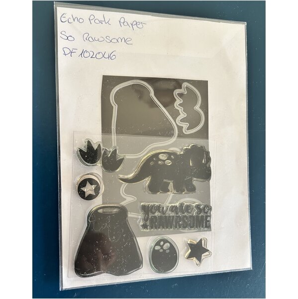 Stempel- und Stanzformenset von Echo Park Paper DF102046 So Rawrsome mit einem Dino und anderen Stempeln