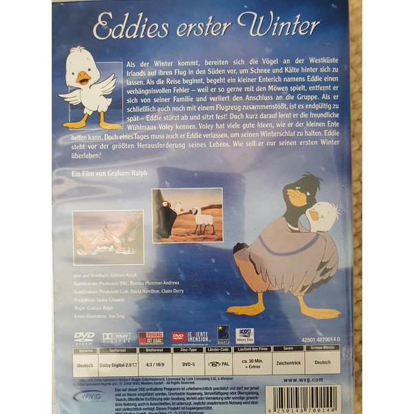 Als der Winter kommt, bereiten sich die Vögel an der Westküste Irlands auf ihren Flug in den Süden vor, Schnee und Kälte hinter sich zu lassen. Als die Reise beginnt, begeht ein kleiner Enterich namens Eddie einen verhängnisvollen Fehler - weil er so gerne mit den Möwen spielt, entfernt er sich von seiner Familie und verliert den Anschluss an die Gruppe. Als er schließlich auch noch mit einem Flugzeug zusammenstößt, ist es endgültig zu spät - Eddie stürzt ab und sitzt fest! Doch kurz darauf lernt er die freundliche Wühlmaus Voley kennen. Voley hat viele gute Ideen, wie er der kleinen Ente helfen kann, doch eines Tages muss auch er Eddie verlassen, um seinen Winterschlaf zu halten. Eddie steht vor der größten Herausforderung seines Lebens. Wie soll er nur seinen ersten Winter überleben?