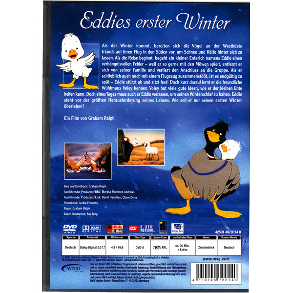 Als der Winter kommt, bereiten sich die Vögel an der Westküste Irlands auf ihren Flug in den Süden vor, Schnee und Kälte hinter sich zu lassen. Als die Reise beginnt, begeht ein kleiner Enterich namens Eddie einen verhängnisvollen Fehler - weil er so gerne mit den Möwen spielt, entfernt er sich von seiner Familie und verliert den Anschluss an die Gruppe. Als er schließlich auch noch mit einem Flugzeug zusammenstößt, ist es endgültig zu spät - Eddie stürzt ab und sitzt fest! Doch kurz darauf lernt er die freundliche Wühlmaus Voley kennen. Voley hat viele gute Ideen, wie er der kleinen Ente helfen kann, doch eines Tages muss auch er Eddie verlassen, um seinen Winterschlaf zu halten. Eddie steht vor der größten Herausforderung seines Lebens. Wie soll er nur seinen ersten Winter überleben?