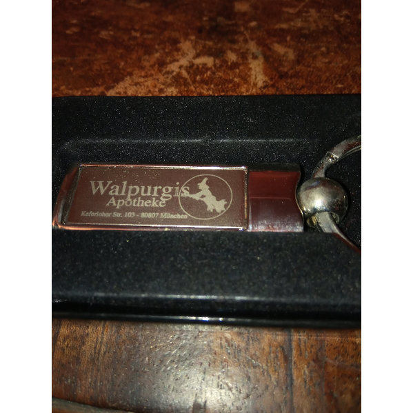 Edelstahl Schlüsselanhänger "Werbegeschenk" mit Hexenmotiv der Walpurgisapotheke in MÜnchen ,