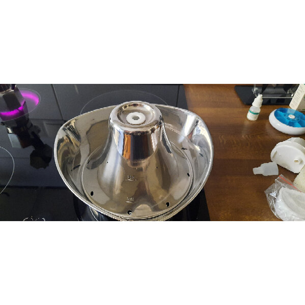 Großer Edelstahl-Trinkbrunnen mit komplettem Zubehör und 2 Ersatzfiltern (nicht original petsafe). Unser Wasser ist einfach zu kalkig, darum gibt die Pumpe auf. Sie läuft zwar prinzipiell noch, braucht aber manchmal etwas überredung und muß erstmal intensiv entkalkt werden. Neue pumpen gibt es für 12€ beim großen Fluß, für uns ist ein Neukauf aber einfach sinnlos. Alle Teile sind frisch gespült. Versand erfolgt nur mit hermes, kein versand an packstationen
