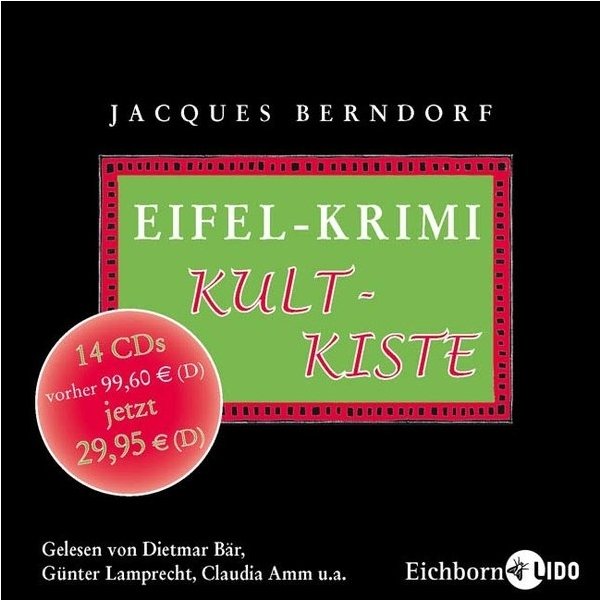 Die Eifel-Krimi Kultkiste enthält die Folgen: "Eifel-Blues", "Eifel-Feuer", "Eifel-Wasser", "Eifel-Liebe" und "Eifel-Träume". Fünf Eifel-Krimis von Jacques Berndorf auf 14 CDs, inszeniert als Hörspiele in Starbesetzung mit den Stimmen von Günter Lamprecht, Dietmar Bär, Claudia Amm und anderen - mehr Krimivergnügen zum kleinen Preis geht nicht.