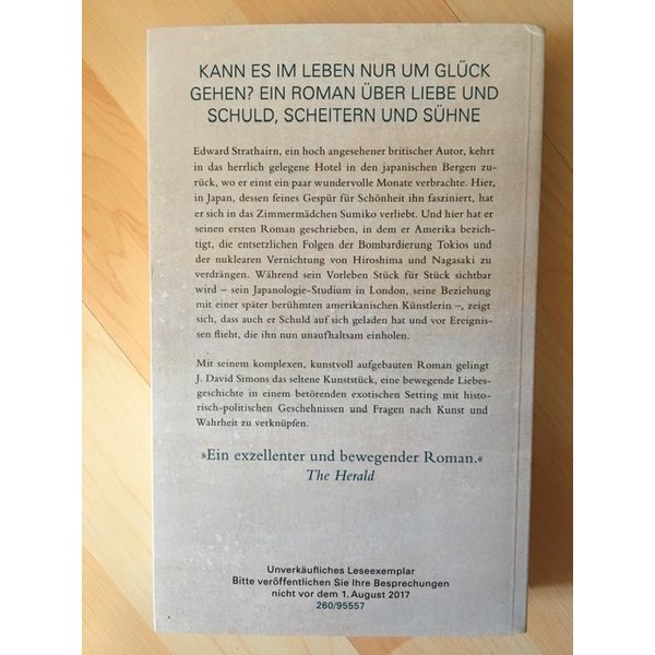 Im Jahr 2003 kehrt der berühmte britische Autor Edward Strathairn zurück nach Hakone in Japan. Hier, in einem herrlich gelegenen Hotel in den Bergen, hatte er sich einst als junger Mann in das Zimmermädchen Sumiko verliebt, das ihn zu seinem Bestseller »Das Wasserrad« inspirierte. Darin kritisierte Edward Amerikas Doppelmoral und warf dem Land vor, die entsetzlichen Folgen der nuklearen Vernichtung von Hiroshima und Nagasaki zu verdrängen. Nach seiner Rückkehr aus Japan heiratete Edward seine große Liebe Macy, eine amerikanische Künstlerin. Doch die Ehe war nicht glücklich. Nun, viele Jahre später, muss Edward erkennen, dass er zwar nicht als Künstler, aber doch als Mensch gescheitert ist.
