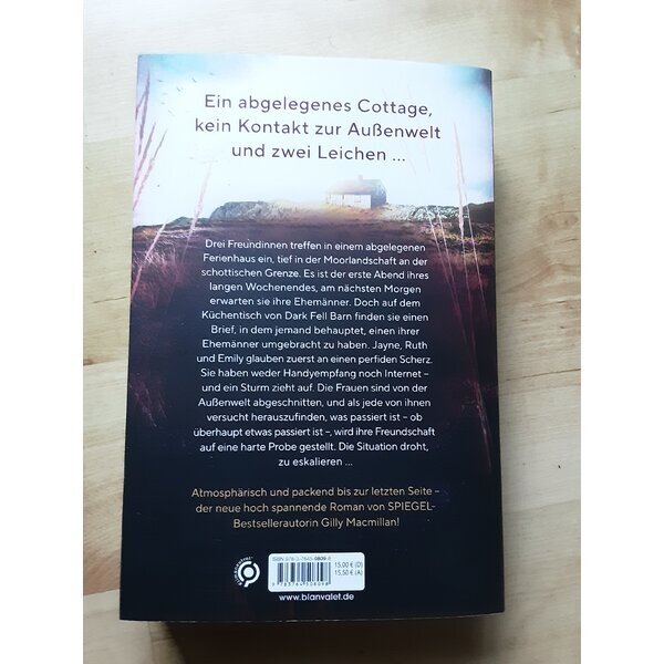 Drei Frauen treffen in einem abgelegenen Ferienhaus ein, tief in der Moorlandschaft von Northumbria an der schottischen Grenze. Es ist der erste Abend ihres langen Wochenendes, am nächsten Morgen erwarten sie ihre Ehemänner. Doch auf dem Küchentisch von Dark Fell Barn finden sie einen Brief, in dem jemand behauptet, einen ihrer Ehemänner umgebracht zu haben. Die drei Frauen glauben zuerst an einen perfiden Scherz. Doch sie haben keinen Handyempfang. Es gibt kein Internet – und ein Sturm zieht auf. Die Frauen sind von der Außenwelt abgeschnitten, und als jede von ihnen versucht herauszufinden, was passiert ist – ob überhaupt etwas passiert ist – werden ihre Freundschaften auf eine harte Probe gestellt. Die Situation droht, zu eskalieren .....