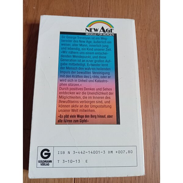 ***2:1 Tausch, 136 g*** Sir George Trevelyan ist ein Wegbereiter des New Age, äußerlich ein weiser, alter Mann, innerlich jung und lebendig, ein Kind unserer Zeit. Durch positives Denken und Sehen entdecken wir die Unendlichkeit der Möglichkeiten, die im Inneren des Bewußtseins verborgen sind und können aktiv an der Umgestaltung unserer Welt mitwirken.