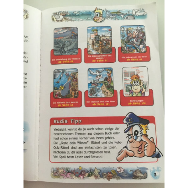 Der Zustand ist gut, Ecke hinten etwas geknickt, dieses Beschäftigungsbuch zum Thema Welt der Meere.
