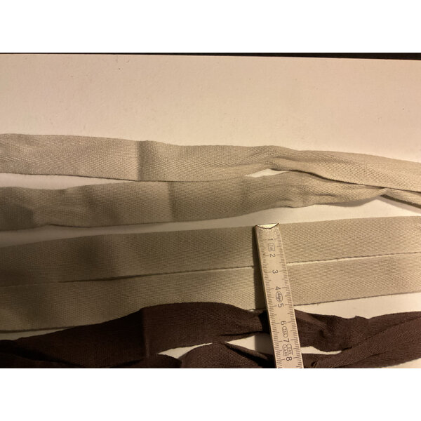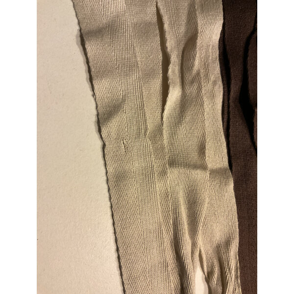 Müssten gebügelt werden, 1 helles Band hat eine kleine Macke, siehe Foto 2 das Gewebe wird sich aber beim Waschen / Bügeln vermutlich zusammenziehen und glätten.