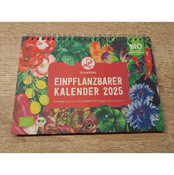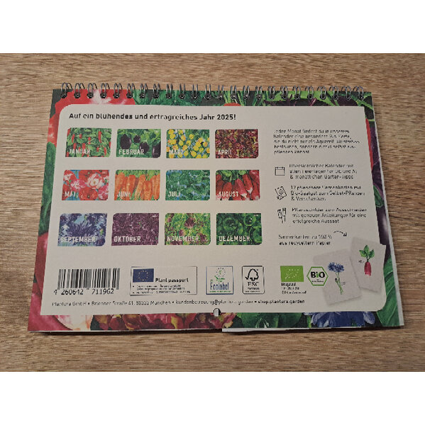 Kalender mit 12 einpflanzbaren Bio-Saatgut Samenkarten, Kalender ist zwar von 2025 aber Infos zu den jeweiligen Pflanzen sind ja immer gültig, Samenkarten und Pflanzenschilder alle vorhanden
