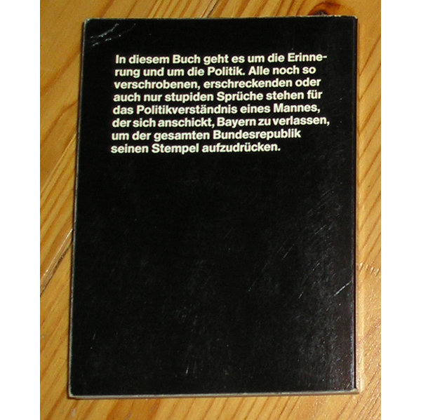 In diesem Buch geht es um die Erinnerung und um die Politik. Alle noch so verschrobenen, erschreckenden oder auch nur stupiden Sprüche stehen für das Politikverständnis eines Mannes, der sich anschickt, Bayern zu verlassen, um der gesamten Bundesrepublik seinen Stempel aufzudrücken