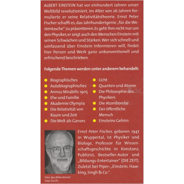 18. April gestorben. Mit 26 Jahren formulierte er seine Relativitätstheorie und brachte die Quantentheorie voran. Wer sich schnell und umfassend über Einstein informieren will, findet hier Verständliches zum Wunderjahr 1905, zur Lichtgeschwindigkeit, zu den Relativitätstheorien und der Quantenmechanik, zur Raumzeit oder zum Gedankenexperiment. Doch bei Einstein darf es nicht nur um Physik gehen. Weil sein Leben, sein Verhältnis zu Frauen, seine Liebe zur Musik oder zum Segeln, sein Pazifismus und sein Judentum, sein Nachdenken über Religion und Philosophie ebenso wichtig sind, werden auch diese Themen von Fischer knapp und unterhaltsam präsentiert.