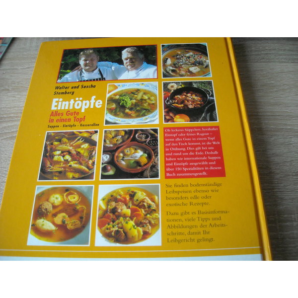 Walter Stemberg ist ein Größe, nicht nur im Bergischen Land. Hier hat er Suppen, Eintöpfe und Kasserollen veröffentlicht, wobei sich ebenso bodenständige Leibspeisen wie internationale Rezepte finden, insgesamt über 150 Spezialitäten.