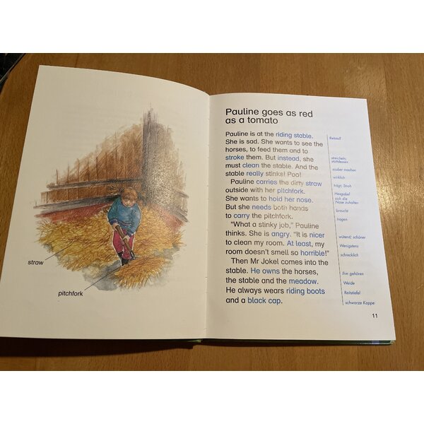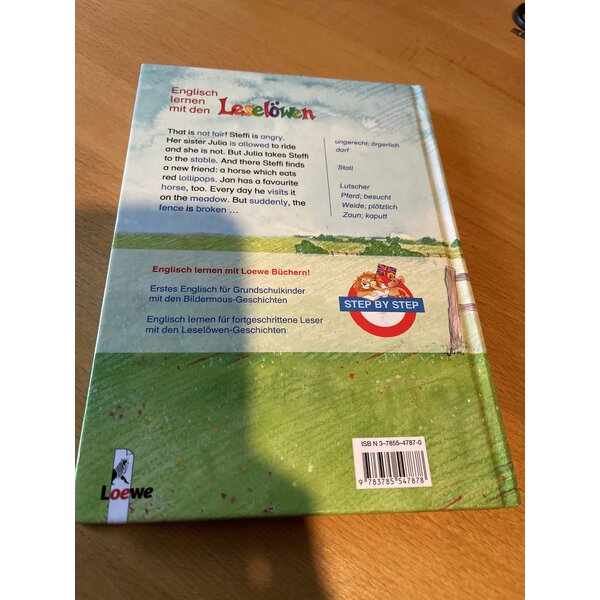 That is not fair! Steffi is angry. Her sister Julia is allowed to ride and she is not. But Julia takes Steffi to the stable. And there Steffi finds a new friend: a horse which eats red lollipops. Jan has a favourite horse, too. Every day he visits it on the meadow. But suddenly, the fence is broken.