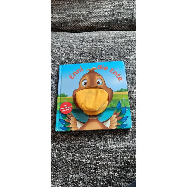 Ecken und Kanten angestoßen, teilweise mit Farbabrieb (vor allem die unteren rechten Ecken vorn und hinten). Handpuppe etwas verschmutzt. Tierfreier Nichtraucherhaushalt.