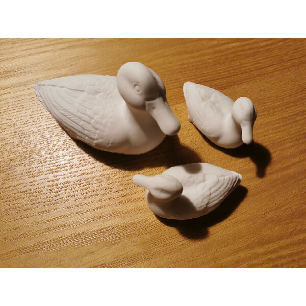 Drei bezaubernde detailgetreue Enten aus feinem Biskuitporzellan