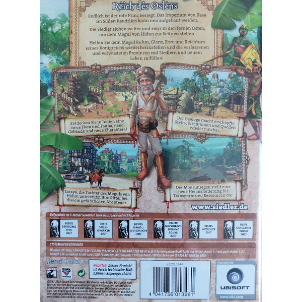 Erweiterung "Reich des Ostens"zum Basisspiel "Die Siedler - Aufstieg eines Königreichs". Sehr guter Zustand. "Reich des Ostens: Endlich ist der rote Prinz besiegt. Das Imperium von Basa im Süden Raudrlins kann neu aufgebaut werden. Die Siedler ziehen weiter und zwar in den fernen Osten, um den Mogul von Hidun zur Seite zu stehen. Helfen Sie dem Mogul Ruhm, Glanz, Ehre und Reichtum seines Königreiches wiederherzustellen und die verlassenen und verwüsteten Provinzen mit Siedlern und neuem Leben zu füllen!